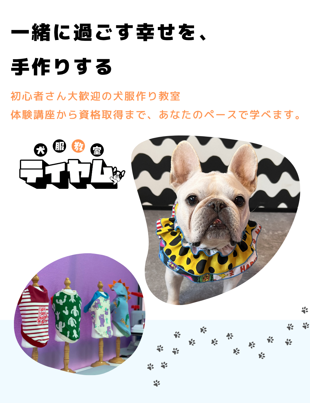犬服教室ティヤムには、初心者の方から経験者の方まで、さまざまな想いを持った生徒さんが通われています。